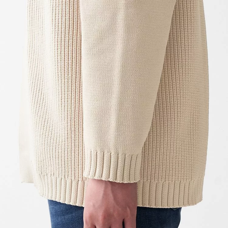 商品說明: [MUJI無印良品]女聚酯纖維中空紗螺紋寬版開襟衫象牙白XS-S