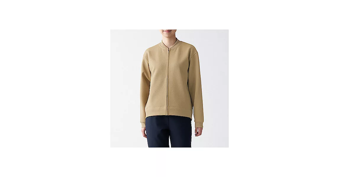 商品描述: [MUJI無印良品]女聚酯纖維二重織拉鍊外套米色M-L