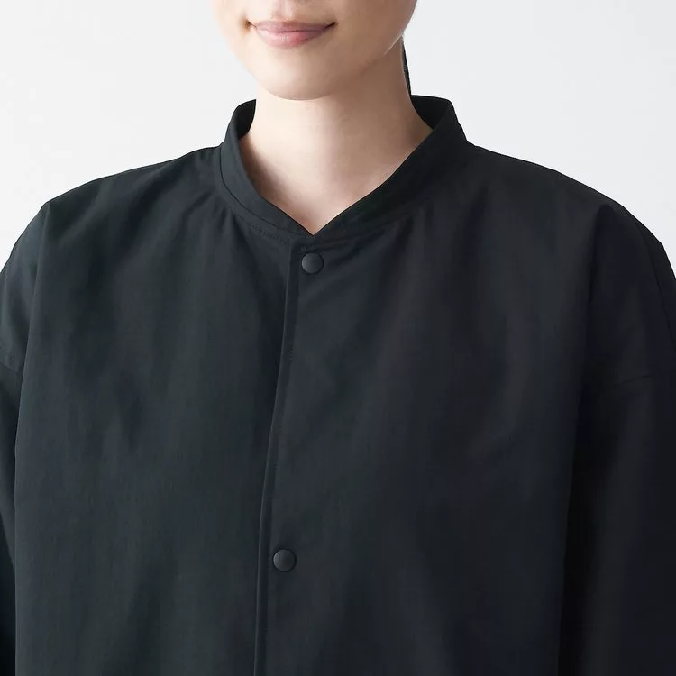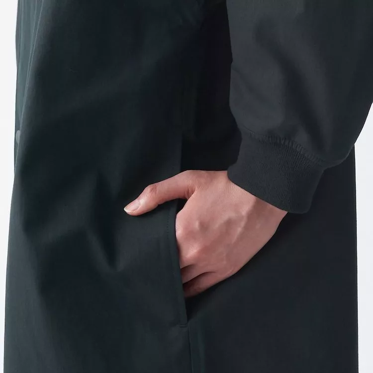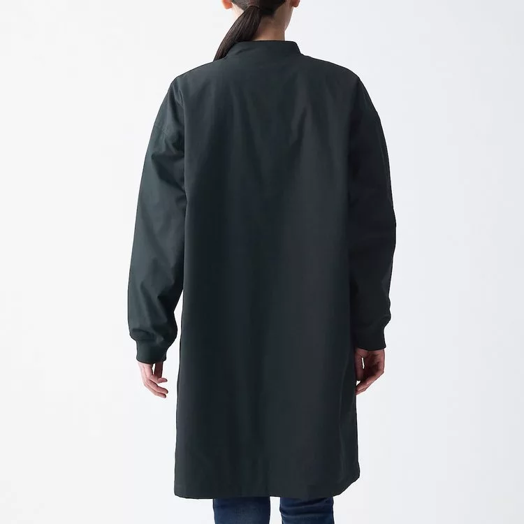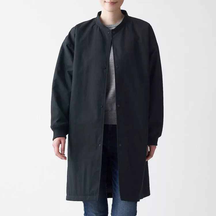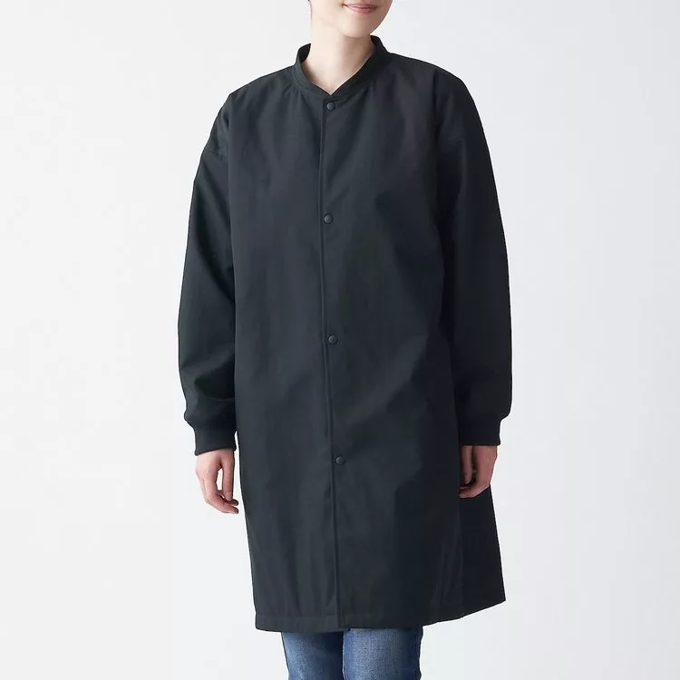 商品描述: [MUJI無印良品]女棉混撥水加工鋪棉立領大衣黑色M-L