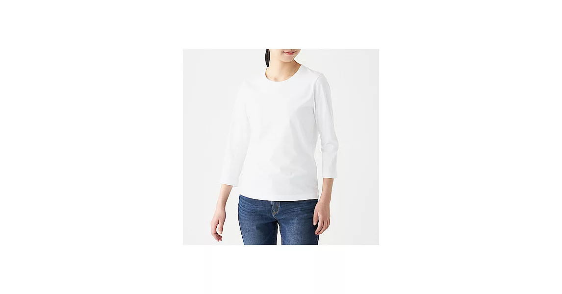 商品描述: [MUJI無印良品]女印度棉天竺七分袖T恤S白色