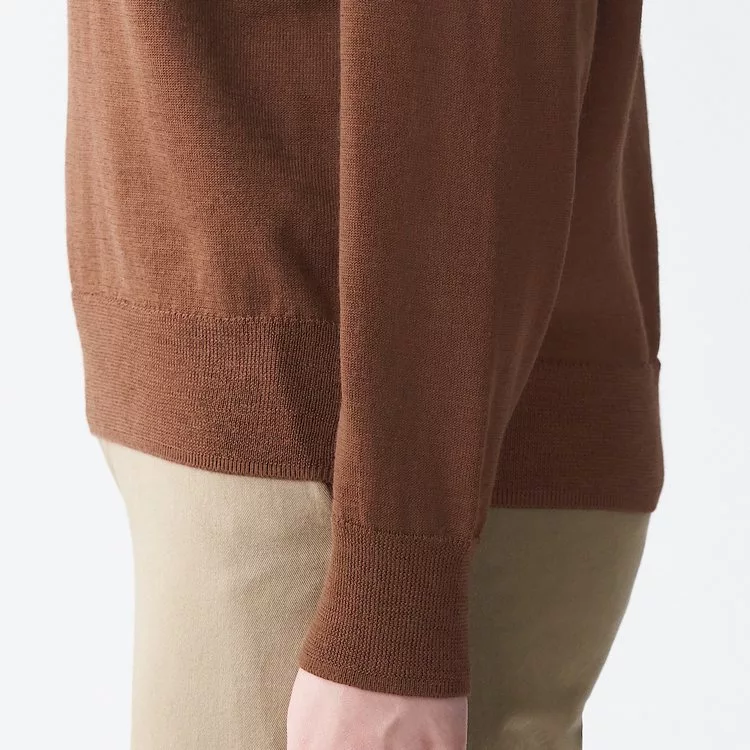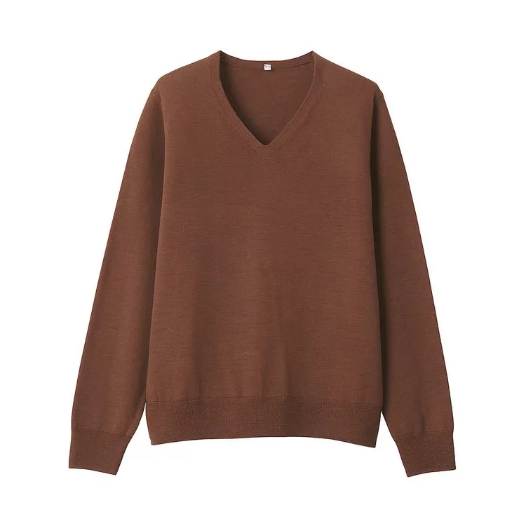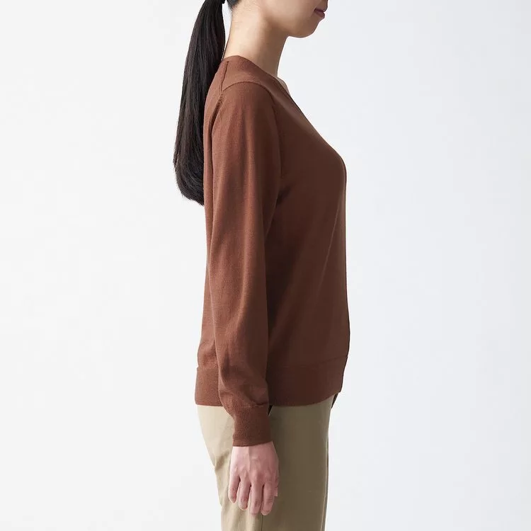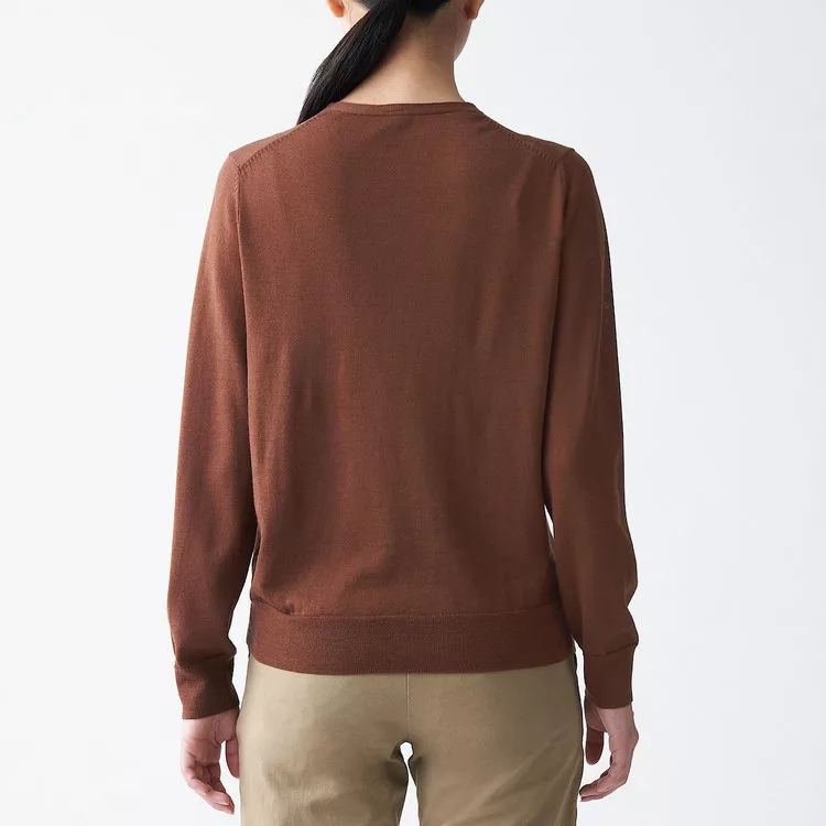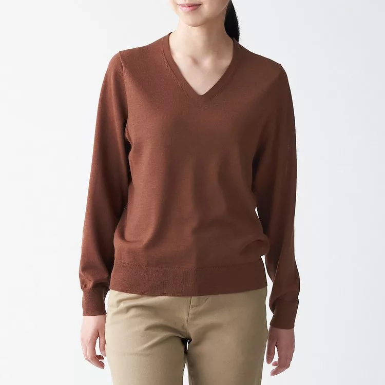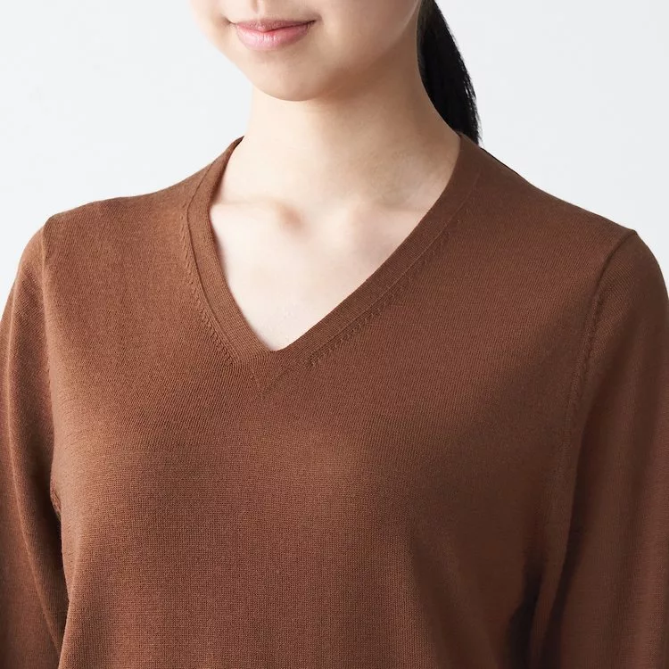 [MUJI無印良品]女羊毛混蠶絲可水洗V領針織衫S磚紅