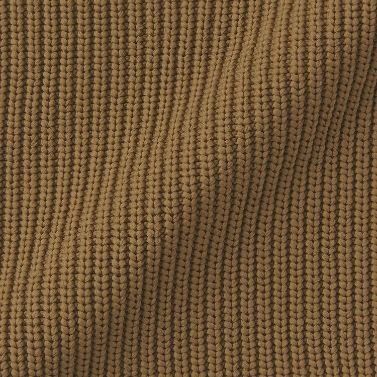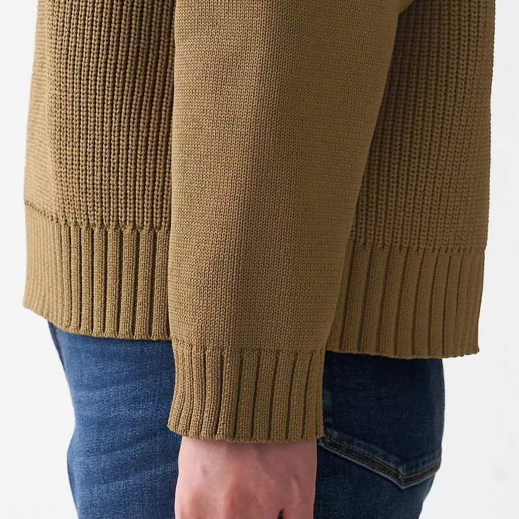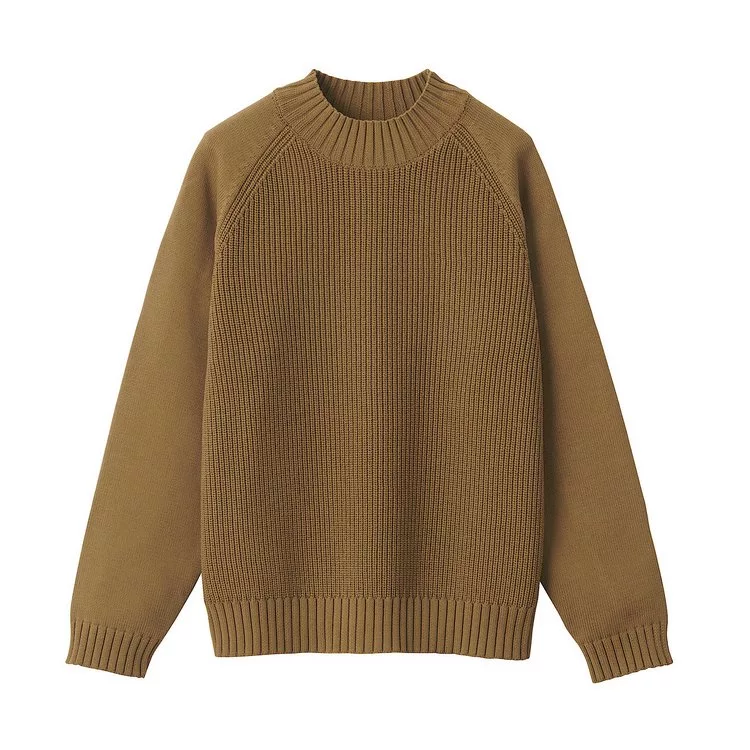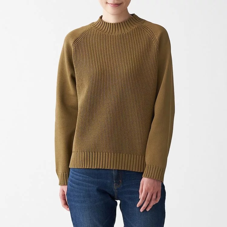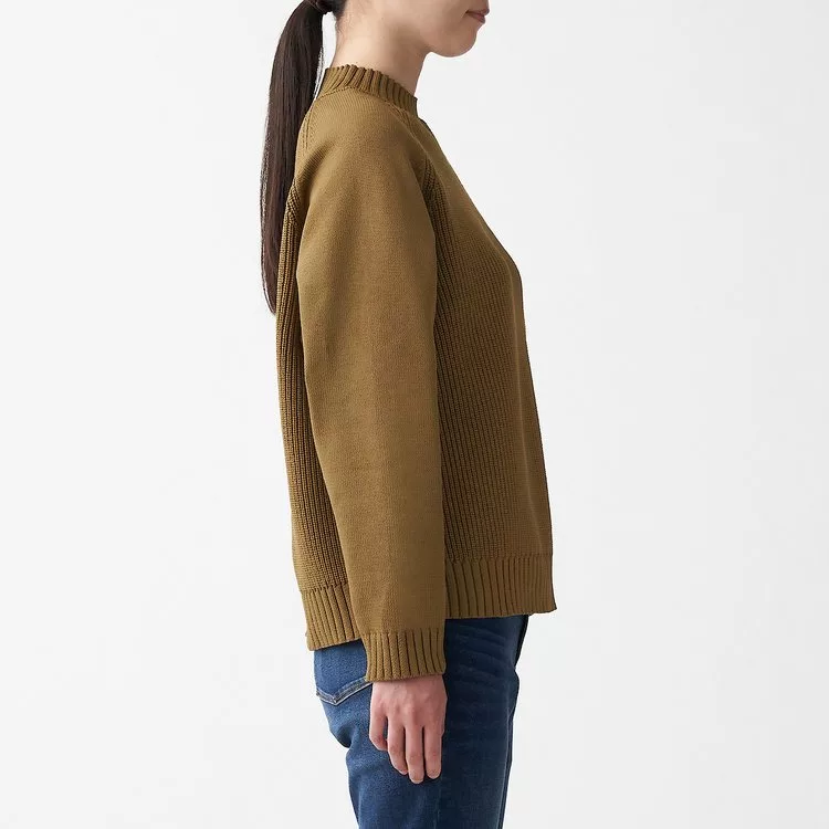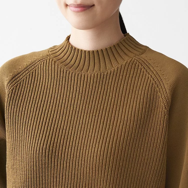 [MUJI無印良品]女聚酯纖維中空紗螺紋半高領長版衫駝色XS-S