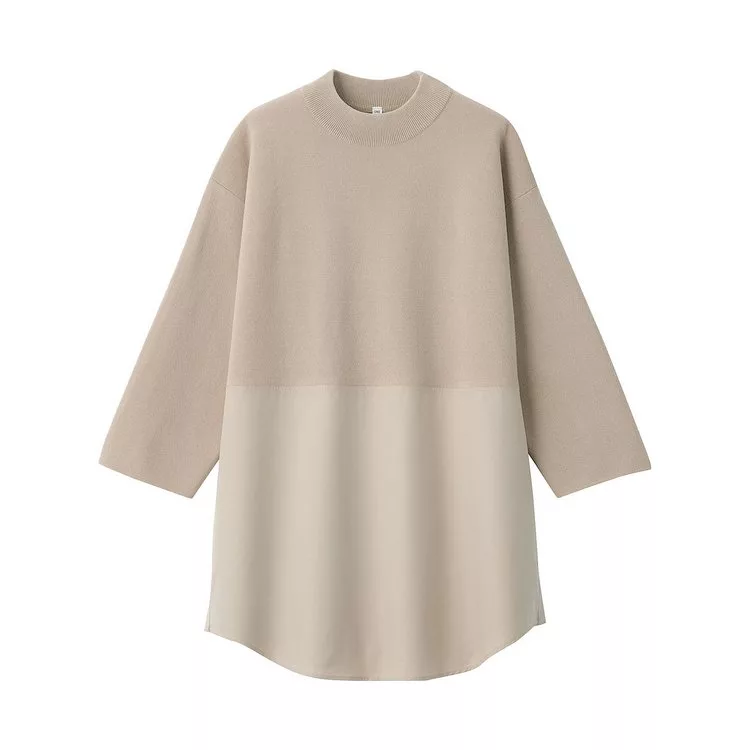 商品描述: [MUJI無印良品]女有機棉素材拼接套衫ONE SIZE淺米