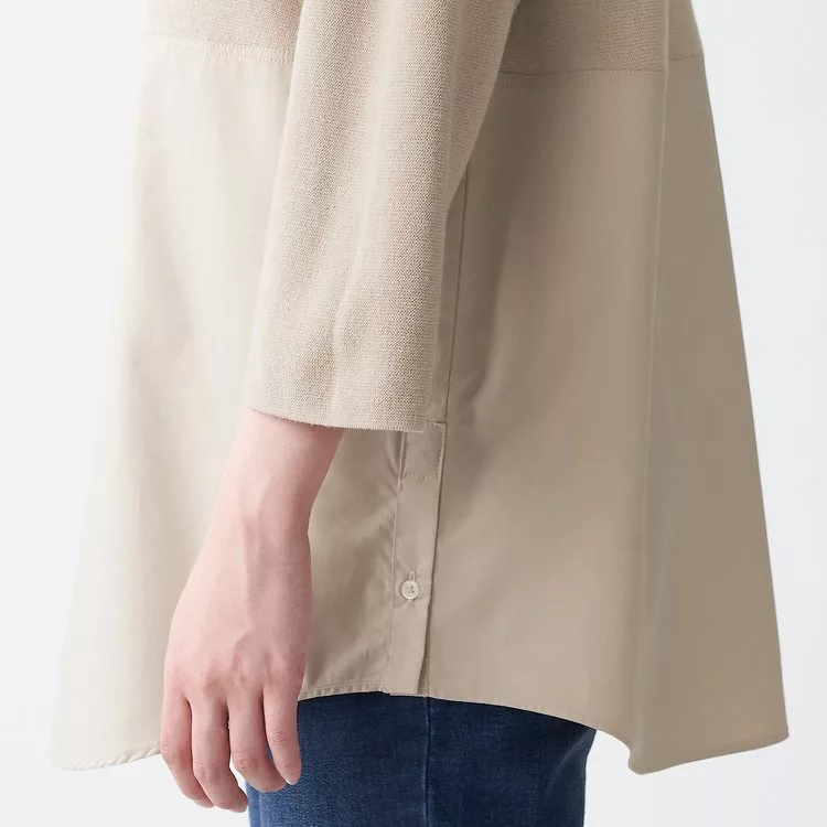商品說明: [MUJI無印良品]女有機棉素材拼接套衫ONE SIZE淺米