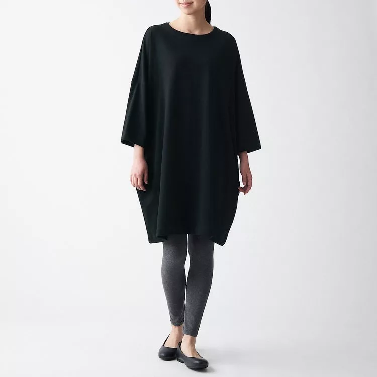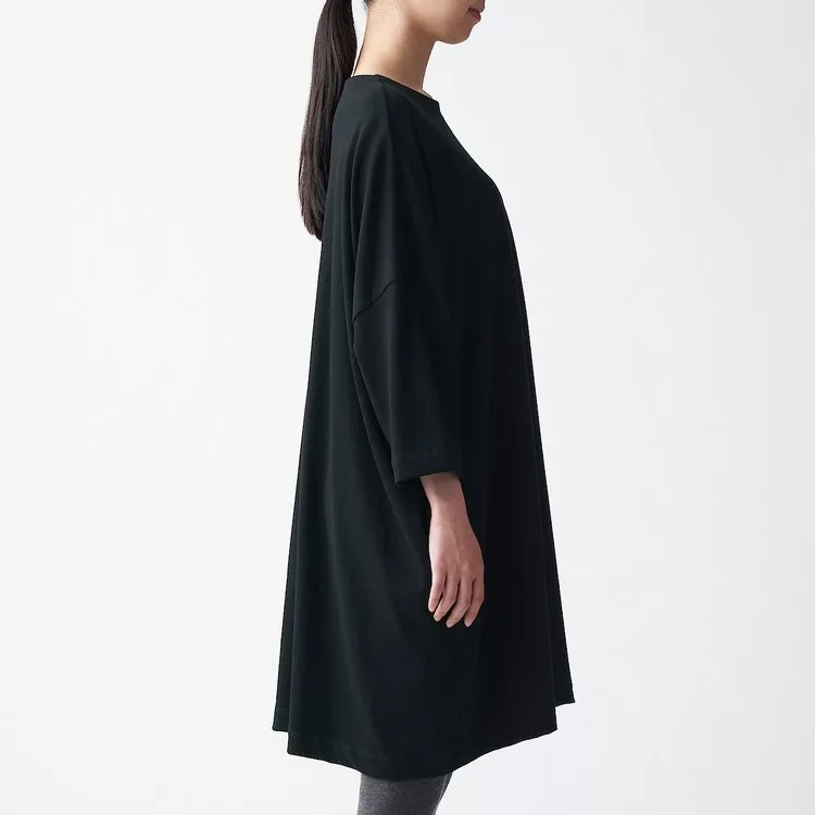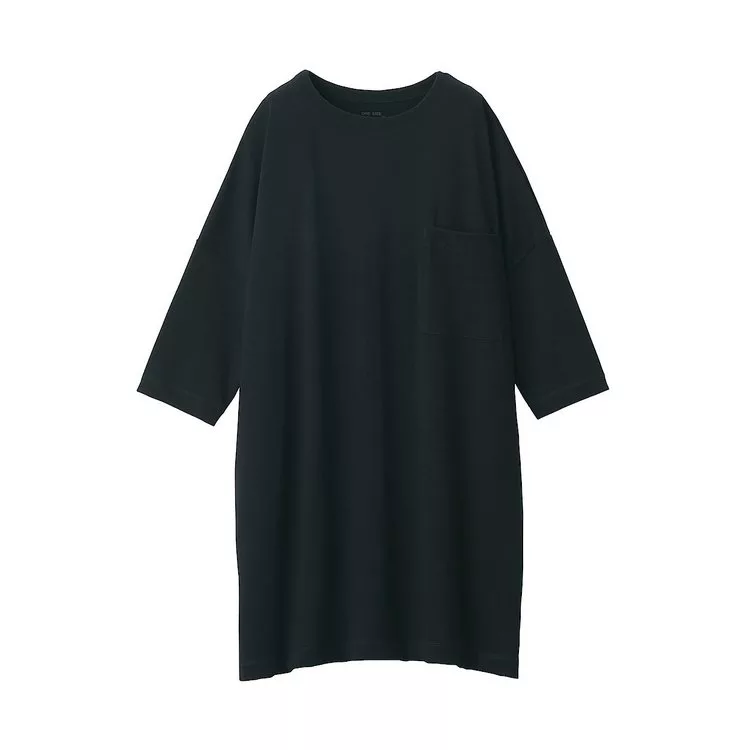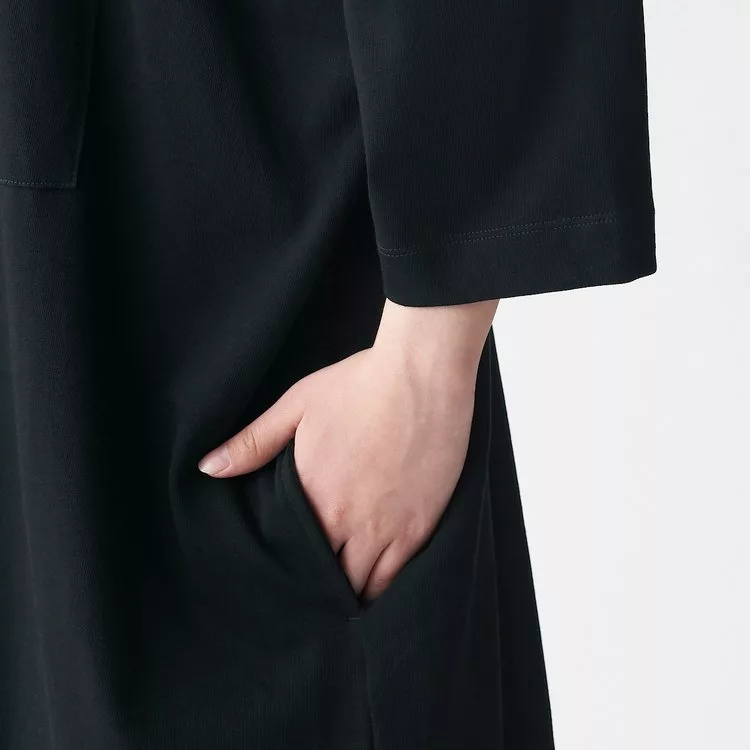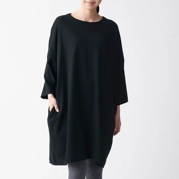 [MUJI無印良品]女有機棉緊密天竺織洋裝ONE SIZE黑色