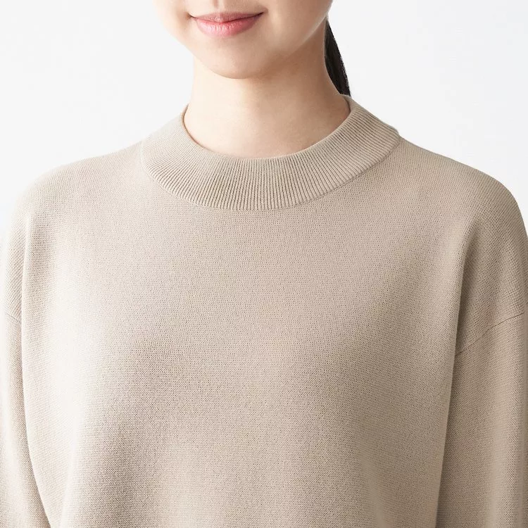 [MUJI無印良品]女羊毛混蠶絲可水洗圓領針織衫S粉米