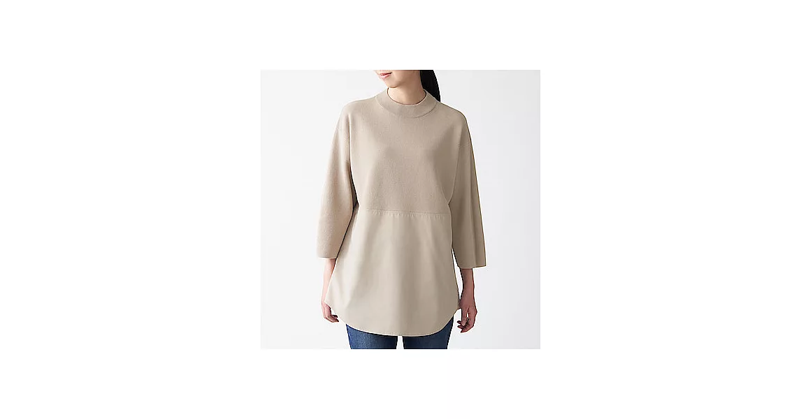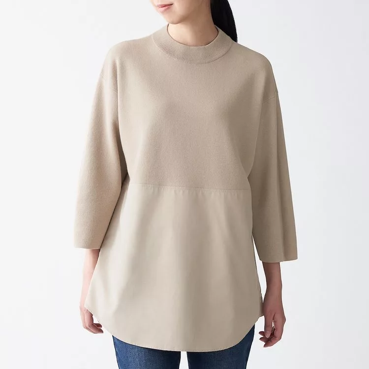 商品描述: [MUJI無印良品]女有機棉素材拼接套衫ONE SIZE淺米