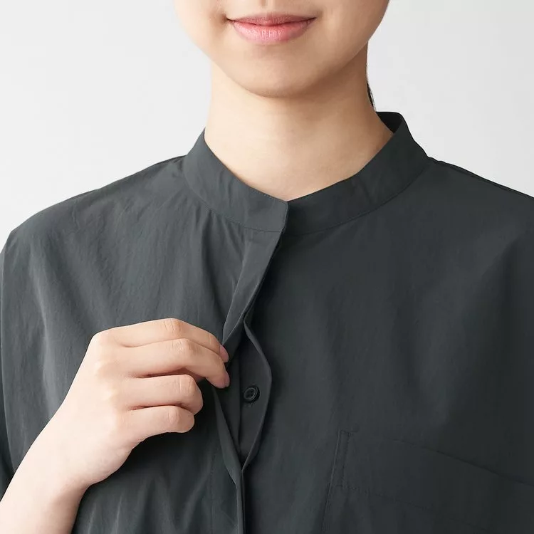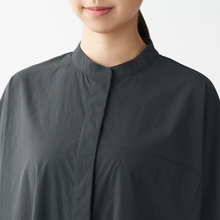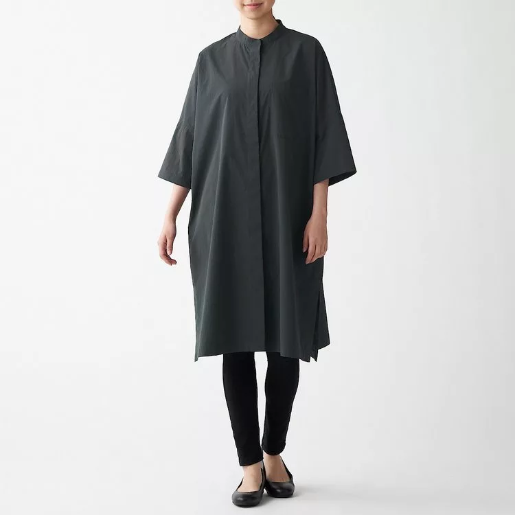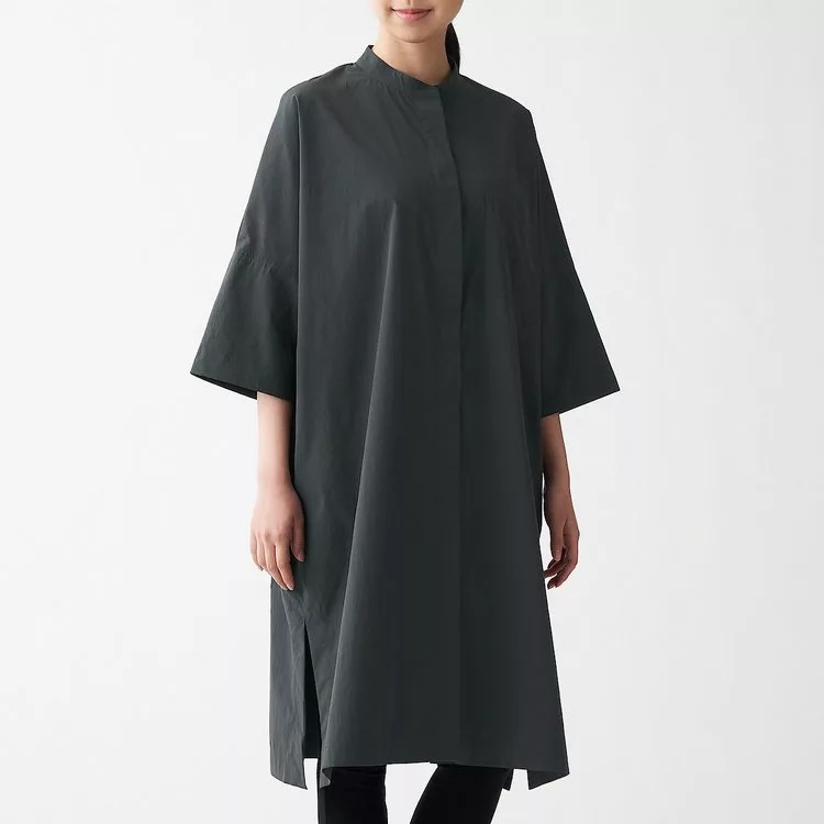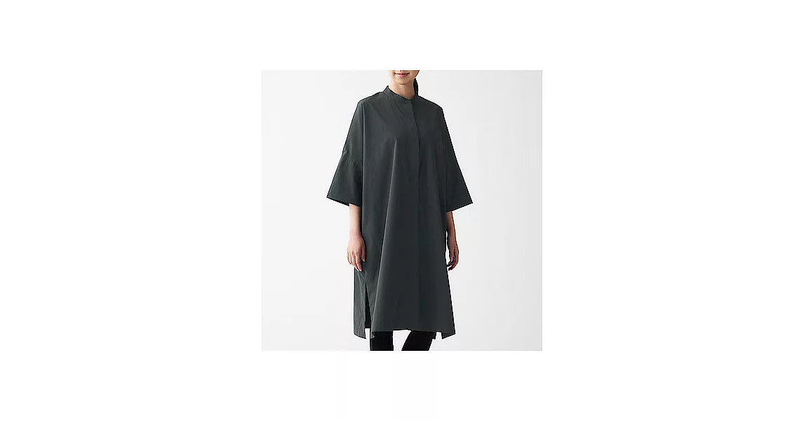 [MUJI無印良品]女印度棉無領襯衫ONE SIZE深灰