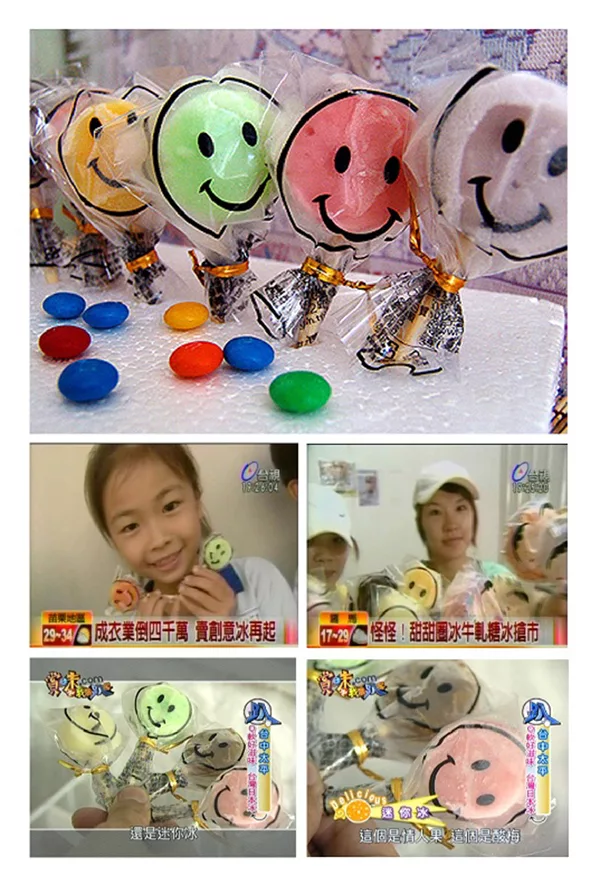 以微笑圖樣包裝的迷你棒棒冰讓人一看就心情大好,外表像小枝的棒棒糖,