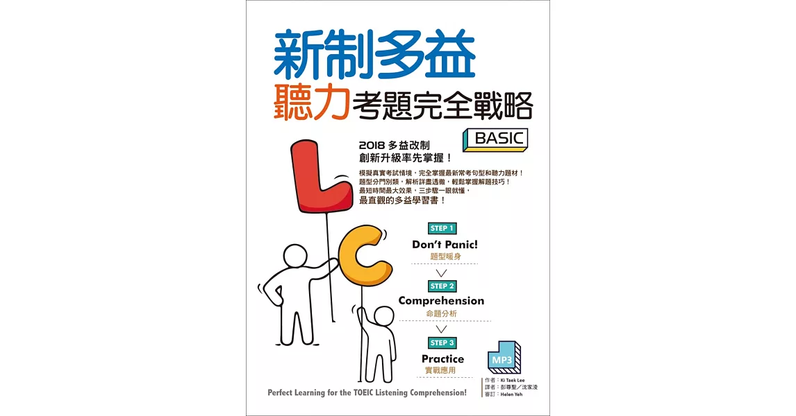 商品描述: 書名:新制多益聽力考題完全戰略 Basic(16K+MP3),語言:繁體中文,ISBN:9789863186557,頁數:344,出版社:寂天,作者:Ki Taek Lee,出版日期:2018/03/09,類別:語言學習
