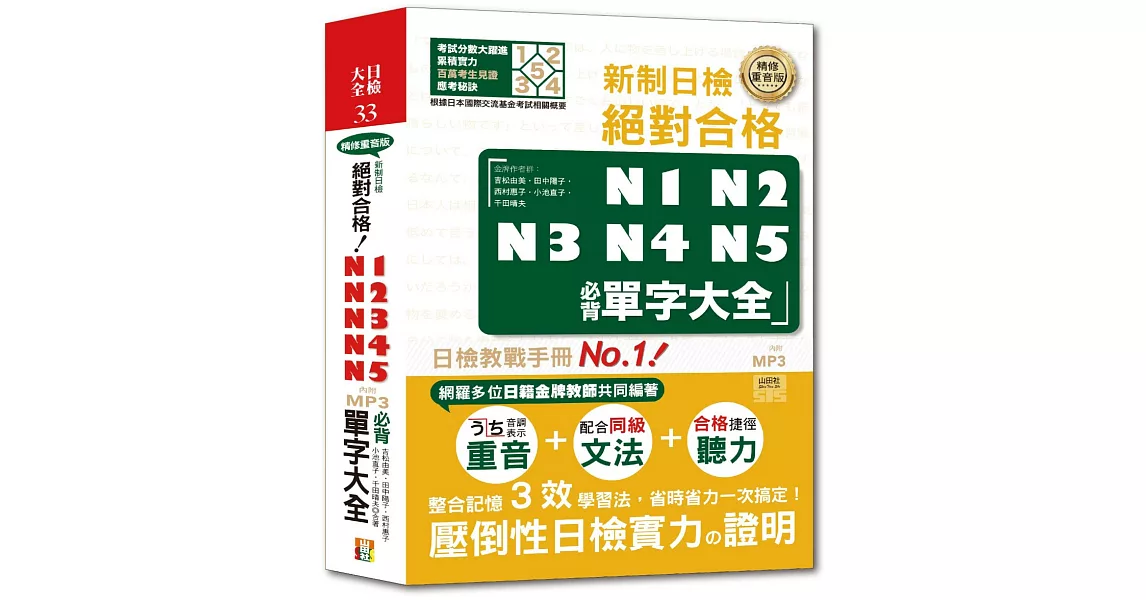 商品說明: 精修重音版 新制日檢!絕對合格N1,N2,N3,N4,N5必背單字大全(25K+MP3)