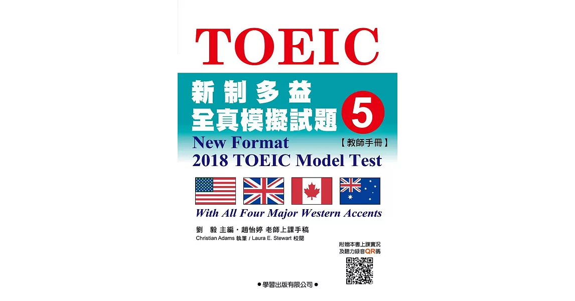 本書內容完全比照2018年3月即將上路的TOEIC新制題型出題,全書包含完整的聽力、閱讀模擬試題,以及口說、寫作測驗。試題後附有教師手稿解答讀本書和上課實況,必能幫助考生,一次就學好聽、說、讀、寫。書內附有聽力QR碼,「聽力部分」由美、加、英、澳四國播音員錄製,讀者只要反覆聆聽,必能熟悉四種不同的口音,從容應試。「口說部分」則由美籍播音員,以標準的美國音朗誦答題範例,供考生模仿學習。