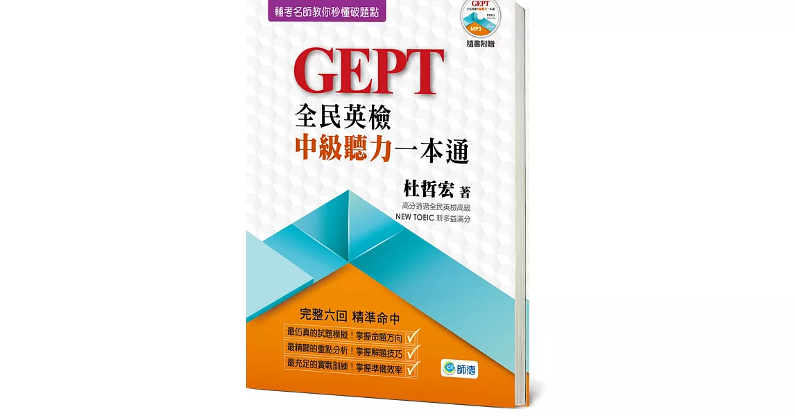 針對全民英檢中級聽力,由輔考名師杜哲宏老師親自撰寫全真模擬試題 6 回,依照最新的出題趨勢,徹底掌握聽力命題要點,加上中英對照詳盡解析,教你如何聽懂破題點,考前演練實力大增,高分通過就是這麼簡單。