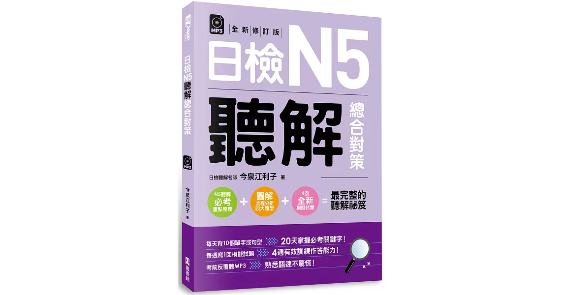 博客來-日檢N5聽解總合對策(附:3回全新模擬試題+1回實戰模擬試題別冊+1MP3)(全新修訂版)訂購網址: https://www.books.com.tw/exep/assp.php/87926/products/0010805207?utm_source=87926&utm_medium=ap-books&utm_content=recommend&utm_campaign=ap-201906