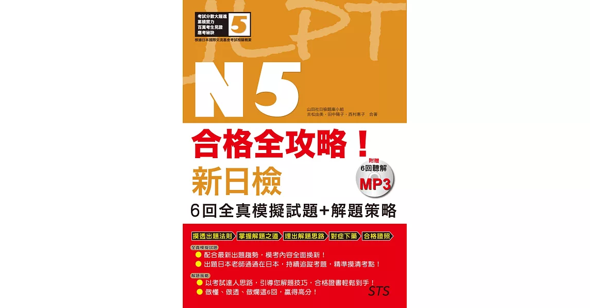 博客來-合格全攻略!新日檢6回全真模擬試題+解題策略N5(附贈16K+6回聽解MP3)訂購網址: https://www.books.com.tw/exep/assp.php/87926/products/0010771982?utm_source=87926&utm_medium=ap-books&utm_content=recommend&utm_campaign=ap-201906