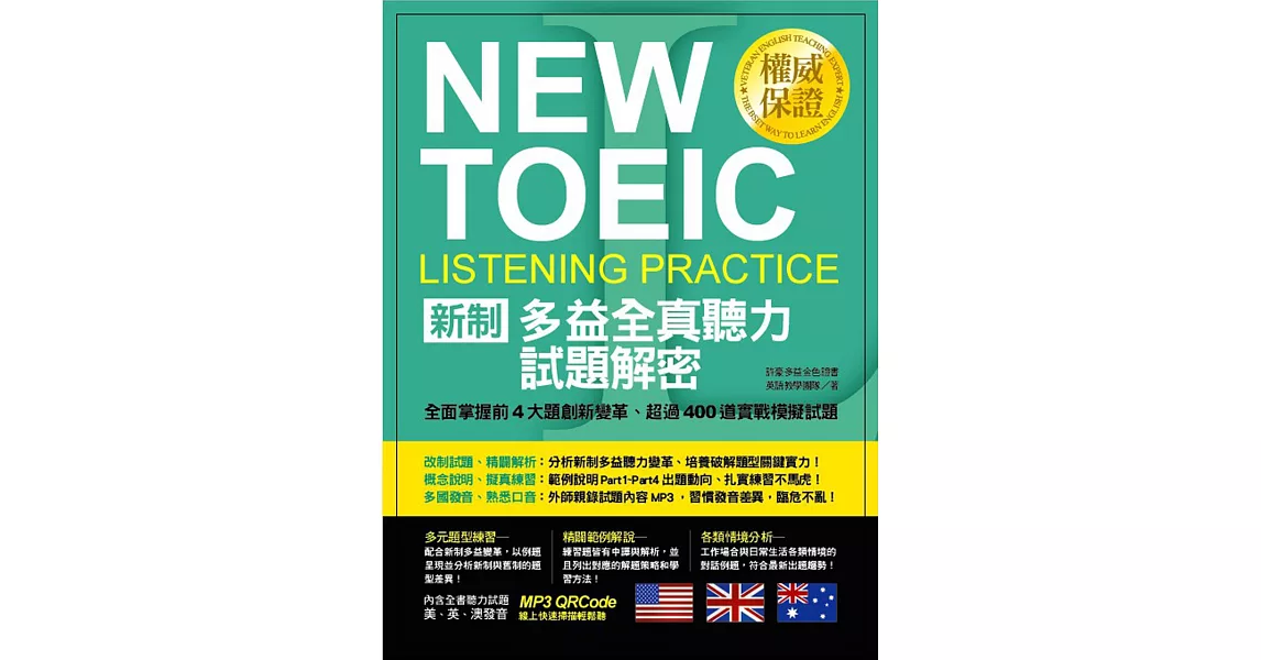 商品說明: 新制多益全真聽力試題解密:全面掌握前4大題創新變革、超過400道實戰模擬試題