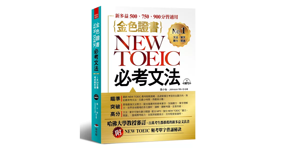 博客來-金色證書:NEW TOEIC必考文法(附MP3 + NEW TOEIC頻考單字背誦秘訣)訂購網址: https://www.books.com.tw/exep/assp.php/87926/products/0010761396?utm_source=87926&utm_medium=ap-books&utm_content=recommend&utm_campaign=ap-201906