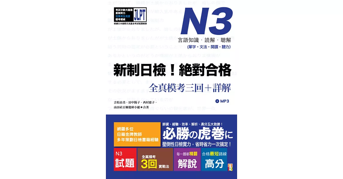 新制日檢!絕對合格 N1單字、文法、閱讀、聽力全真模考三回+詳解(16K+MP3)