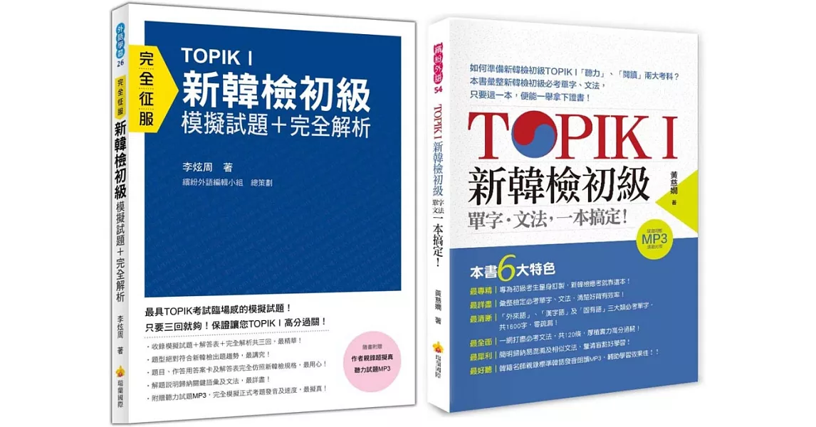 博客來-TOPIK I新韓檢初級《單字‧文法+模擬試題‧完全解析》【博客來獨家套書】訂購網址: https://www.books.com.tw/exep/assp.php/87926/products/0010759906?utm_source=87926&utm_medium=ap-books&utm_content=recommend&utm_campaign=ap-201906