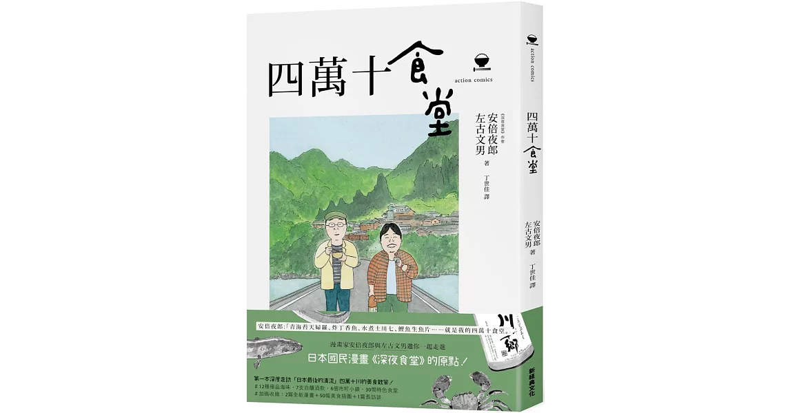 出版了暢銷六百萬冊的《深夜食堂》系列漫畫,安倍夜郎仍謙稱自己並非美食漫畫家,但一旦聊起家鄉四萬十市的料理,就忘情停不下來。雖然不是展露華麗烹飪技術或者精心庖製的高級美食,卻都是營養豐富、能體現食材原味的菜肴,充滿想念與疼愛的味道。兩位同樣出身四萬十市的國民漫畫家,因為真心愛著家鄉,透過這本《四萬十食堂》將故鄉的美食與文化傳遞出去。