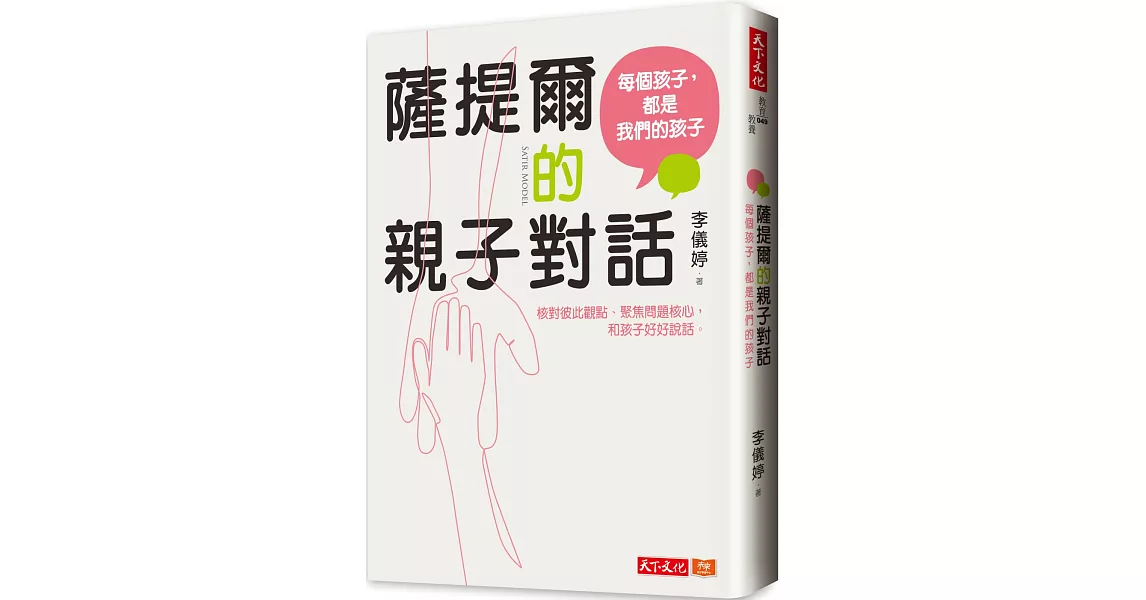 博客來-薩提爾的親子對話:每個孩子,都是我們的孩子 從實戰經驗淬鍊超強親子對話(附超擬真實作練習)訂購網址: https://www.books.com.tw/exep/assp.php/87926/products/0010844323?utm_source=87926&utm_medium=ap-books&utm_content=recommend&utm_campaign=ap-202002