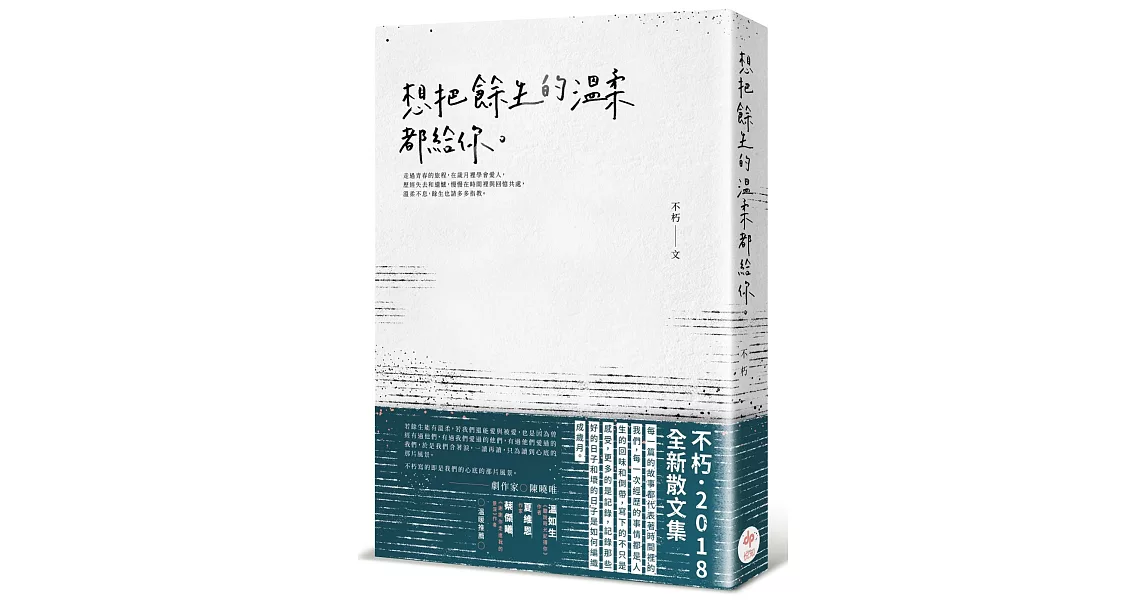 商品描述: 書名:想把餘生的溫柔都給你,語言:繁體中文,ISBN:9789578787292,頁數:288,出版社:悅知文化,作者:不朽,出版日期:2018/05/21,類別:文學小說