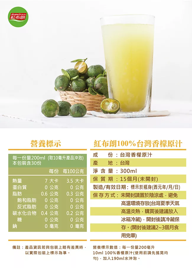 →→→→更多詳細”《紅布朗》台灣香檬原汁(300ml-瓶)”介紹請點我