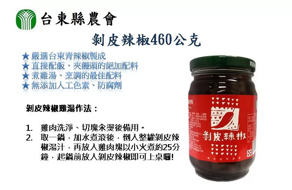 商品描述: 【台東縣農會】剝皮辣椒460公克