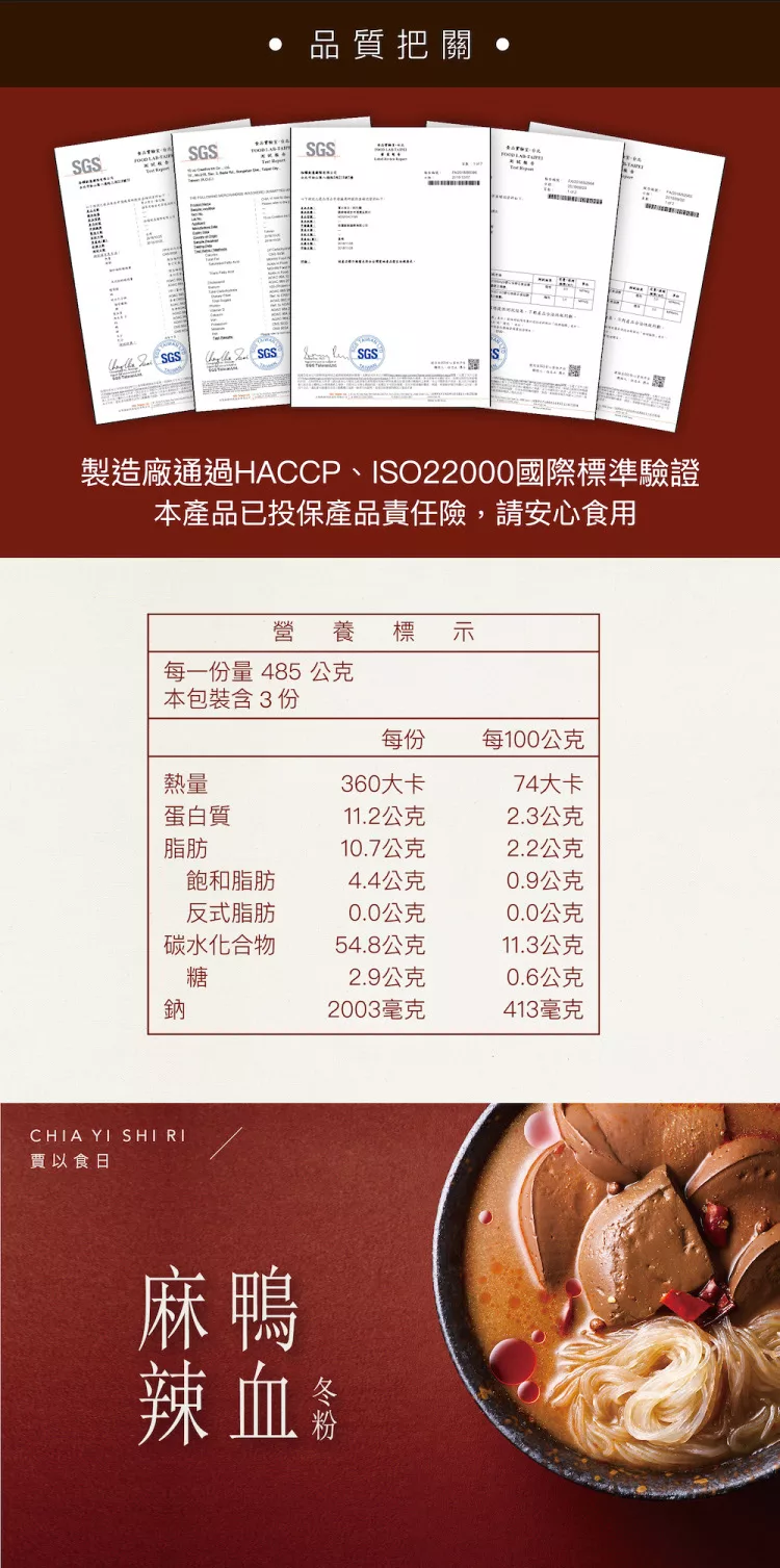 →→→→更多詳細”賈以食日 麻辣鴨血冬粉禮盒”介紹請點我