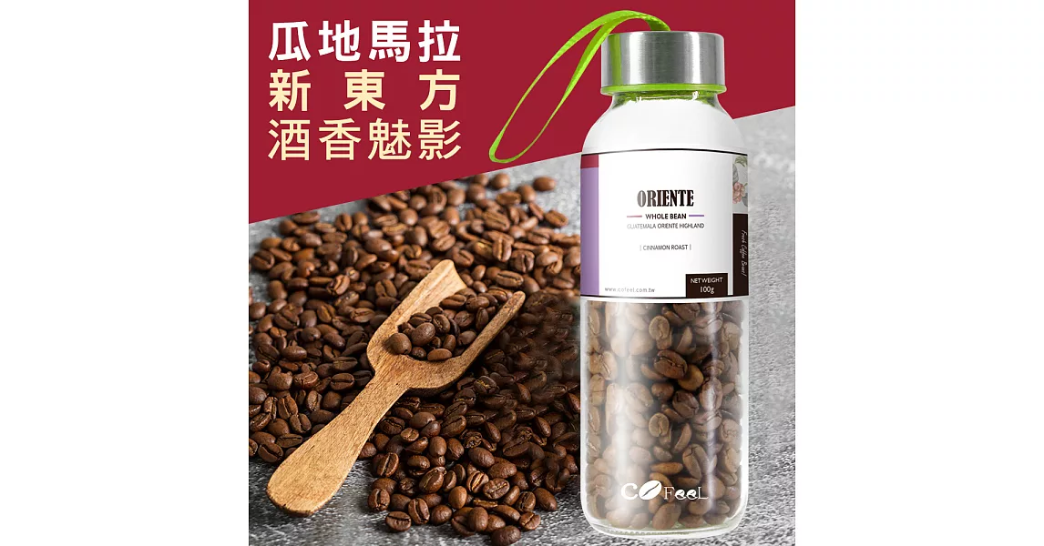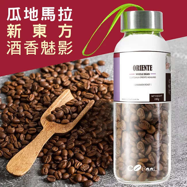 商品說明: CoFeel 凱飛鮮烘豆瓜地馬拉新東方酒香魅影淺烘焙咖啡豆玻璃精裝瓶