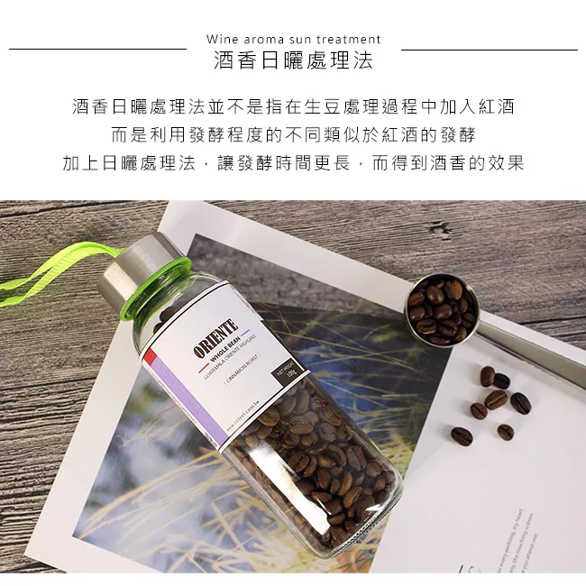 商品描述: CoFeel 凱飛鮮烘豆瓜地馬拉新東方酒香魅影淺烘焙咖啡豆玻璃精裝瓶