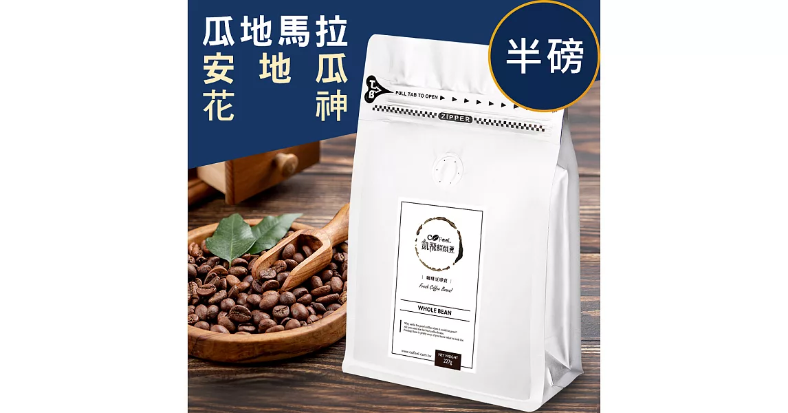 商品描述: CoFeel 凱飛鮮烘豆瓜地馬拉安地瓜花神中烘焙咖啡豆半磅