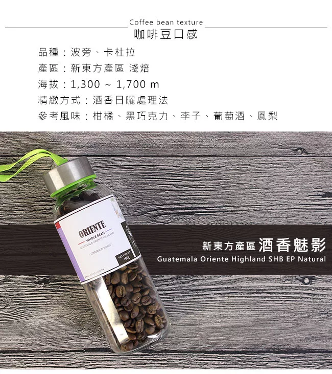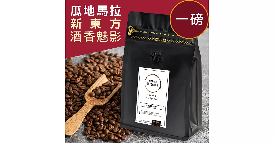 商品說明: CoFeel 凱飛鮮烘豆瓜地馬拉新東方酒香魅影淺烘焙咖啡豆一磅