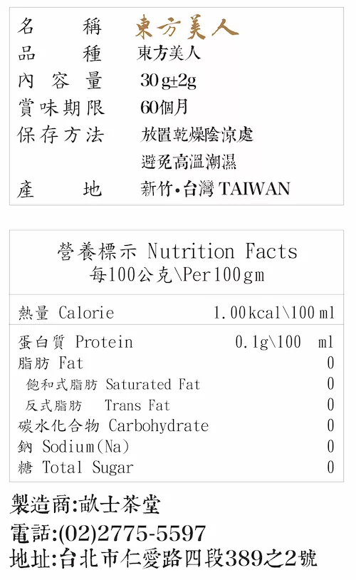 商品描述: 《畝士茶堂》美人湯•東方美人