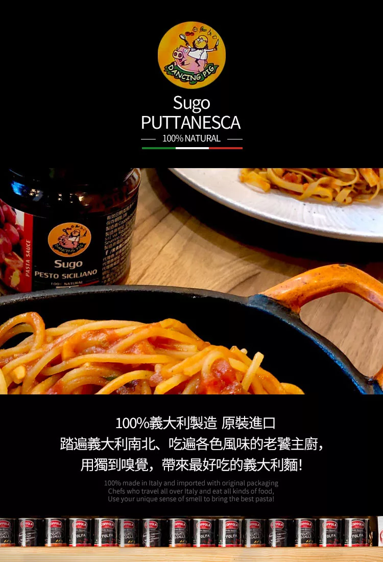 商品說明: 【豬跳舞】西西里日曬番茄紅醬 義大利醬麵(180g)